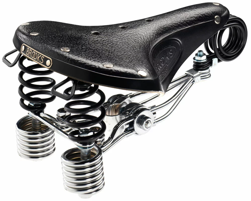 La B135 est l’un des modèles Brooks à ressorts les plus puissants, avec deux ressorts hélicoïdaux doubles à l’arrière et un ressort à double boucle à l’avant. Le dessus en cuir, qui a la même forme que le B66, assure un confort d’assise total. Cette selle en cuir de base est fabriquée à la main en Angleterre.