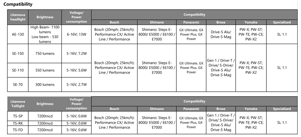 Le design compact et fin de la lampe frontale pour e-bike SE-110 Litemove s’adapte à tout type de vélo. La lentille dotée de la technologie MTi fournit un excellent éclairage avec un cône lumineux de 6 mètres de large sur et en dehors de la route et laisse la puissante lumière de 110 lux avec 550 lumens briller à 60 mètres dans l’obscurité.