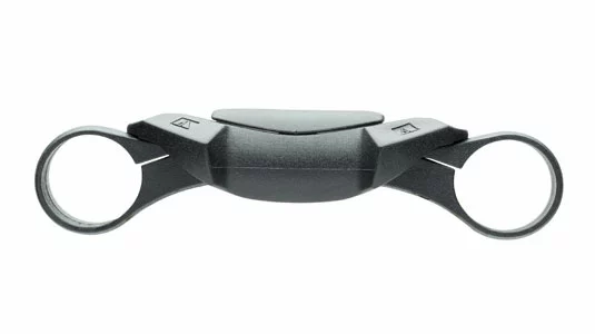 Large pont aérodynamique réglable permettant de positionner les supports d’ordinateur ou d’accessoires entre les longerons du guidon aérodynamique.