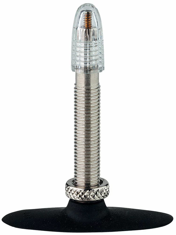 Trois types sont devenus des standards du marché et il est difficile de faire une recommandation particulière. L’aspect le plus important est que la valve s’adapte au trou de valve de la jante et qu’une pompe appropriée soit disponible. Contrairement à la croyance populaire, les grandes différences de rétention d’air appartiennent désormais au passé. Dans tous les cas, toutes les valves Schwalbe offrent d’excellentes performances et sont adaptées à une utilisation à haute pression. La valve classique de vélo ou valve Dunlop reste la plus répandue dans le monde. La plupart des cyclistes la connaissent. Le noyau de la valve peut être facilement remplacé et l’air peut être libéré très rapidement. Le montage d’une chambre à air équipée d’une valve Dunlop est plus délicat, car il faut retirer le noyau de la valve et le contre-écrou afin de faire passer la valve dans le trou de la valve. Le gonflage n’est possible que lorsque le noyau et l’écrou sont remis en place. Avec les valves Dunlop traditionnelles, il est impossible de vérifier la pression de gonflage. Cependant, la valve spéciale Schwalbe Dunlop permet un retour d’air, de sorte qu’il est maintenant possible de vérifier la pression de gonflage avec un manomètre Airmax. Auparavant, il était difficile de gonfler un tube avec une valve Dunlop, mais avec les noyaux de valve modernes d’aujourd’hui, ce n’est plus le cas. La valve Sclaverand est plus étroite que les autres valves (6 au lieu de 8 mm). Elle nécessite un trou de jante plus petit et est donc particulièrement bien adaptée aux jantes étroites des vélos de course. Elle est également plus légère d’environ 4-5 g qu’une valve de voiture ou une valve Dunlop. Elle peut être verrouillée manuellement avec l’écrou moleté. Avant de gonfler, il faut desserrer l’écrou moleté. Les premiers utilisateurs rencontrent souvent des problèmes. De plus, la fine tige supérieure peut être facilement pliée lors de la fixation et du retrait du connecteur de la pompe. Attention : Sachez que l’utilisation de tubes à valve Sclaverand sur des jantes avec des trous de valve plus grands entraîne souvent un arrachement de la valve lorsque les bords métalliques tranchants autour du trou de valve coupent la tige de valve du tube. La valve Auto/Car peut être gonflée très facilement dans une station-service et ne pose aucun problème. Les anciennes pompes à vélo, ainsi que les simples pompes à vélo, ne sont pas compatibles avec les valves auto.
