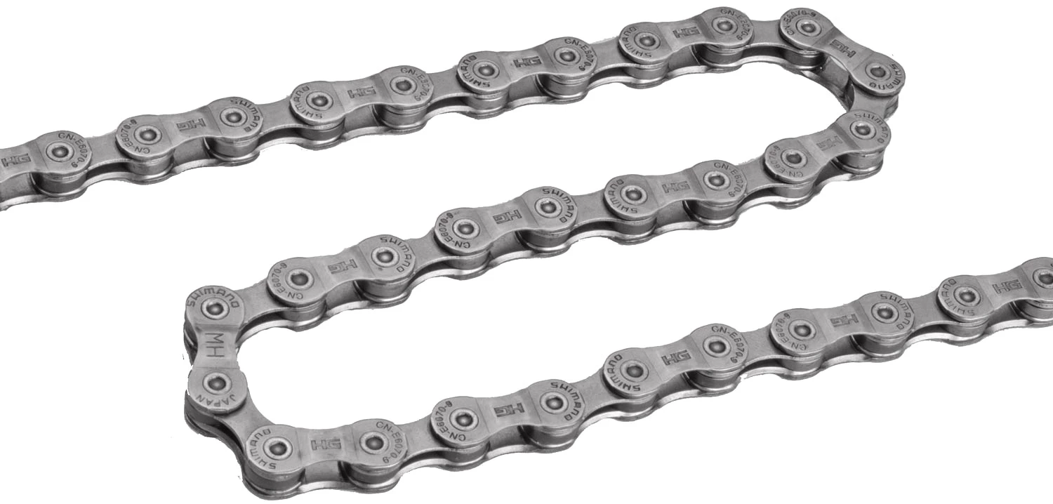 La chaîne CN-E6070 9 vitesses pour vélos électriques de Shimano avec une nouvelle taille de maillons pour le système de transmission STEPS E6000 et E8000 1 x 9 vitesses. Maintenant disponible en emballage d’atelier de 20 pièces !