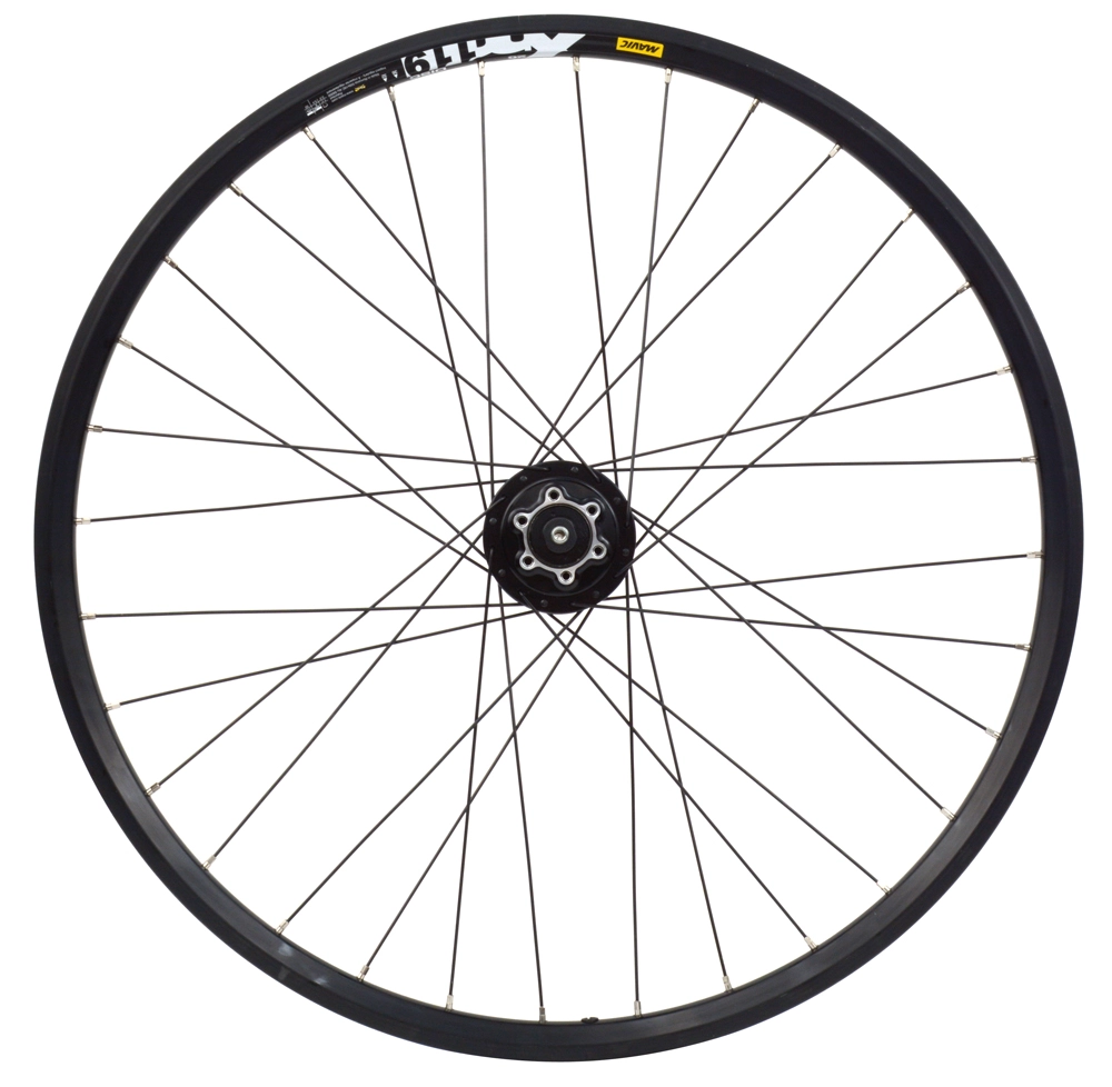 - 1 roue avant 26″ Shimano Disc 6 trous DH-3D32 dynamo dans le moyeu avec jante Mavic XM 119 Disc