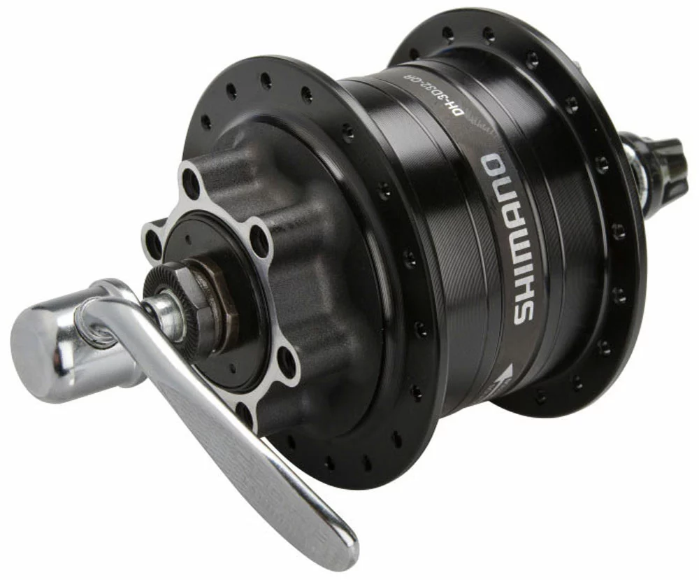 La dynamo de moyeu DH-3D32-QR 6 volts / 3 watts de Shimano avec fixation de disque 6 trous a une unité interne nouvellement construite qui réduit le poids et la résistance de la dynamo.