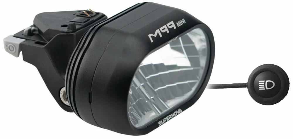 Le M99 MINI PRO25 de Supernova offre la même lumière que son grand frère, d’une portée et d’une largeur énormes, dans un boîtier incroyablement compact. Sans éblouissement en ville avec les feux de croisement et avec les feux de route en forêt, par simple pression sur un bouton.